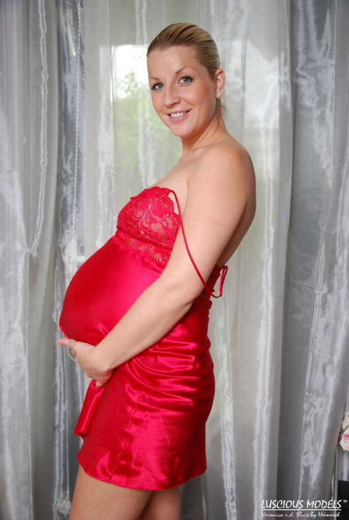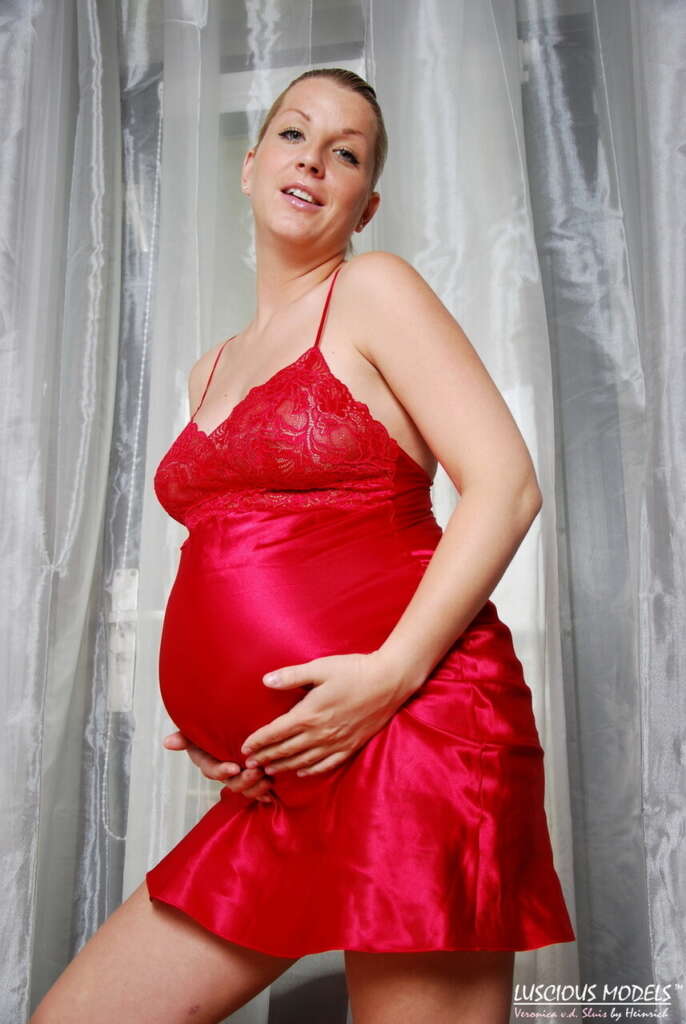Pregnant amateur Luscious brands gets completely naked in front of sheer curtain