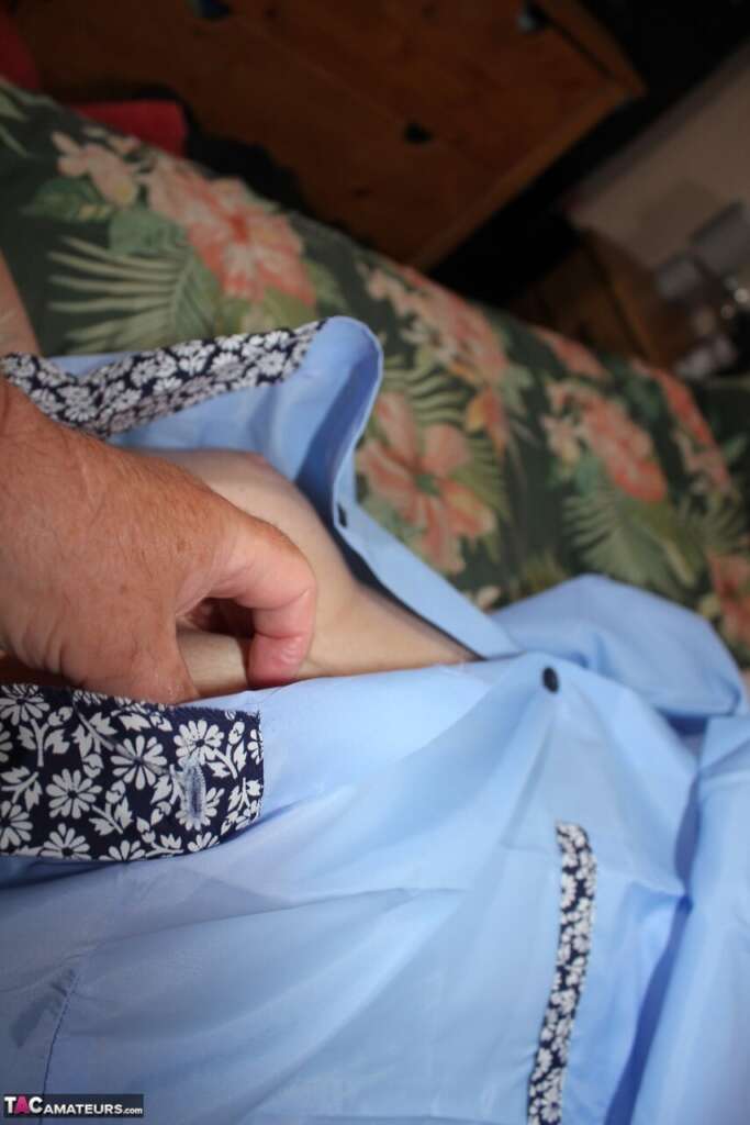Blonde amateur Tracey Lain gets on top while having sex in white stockings